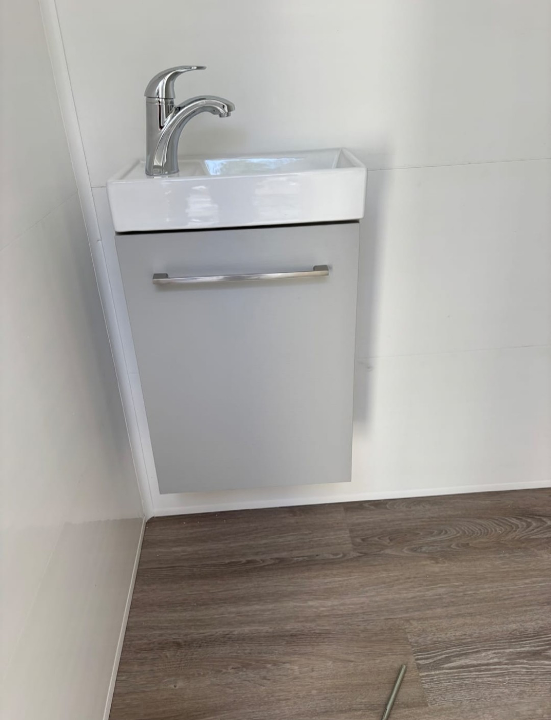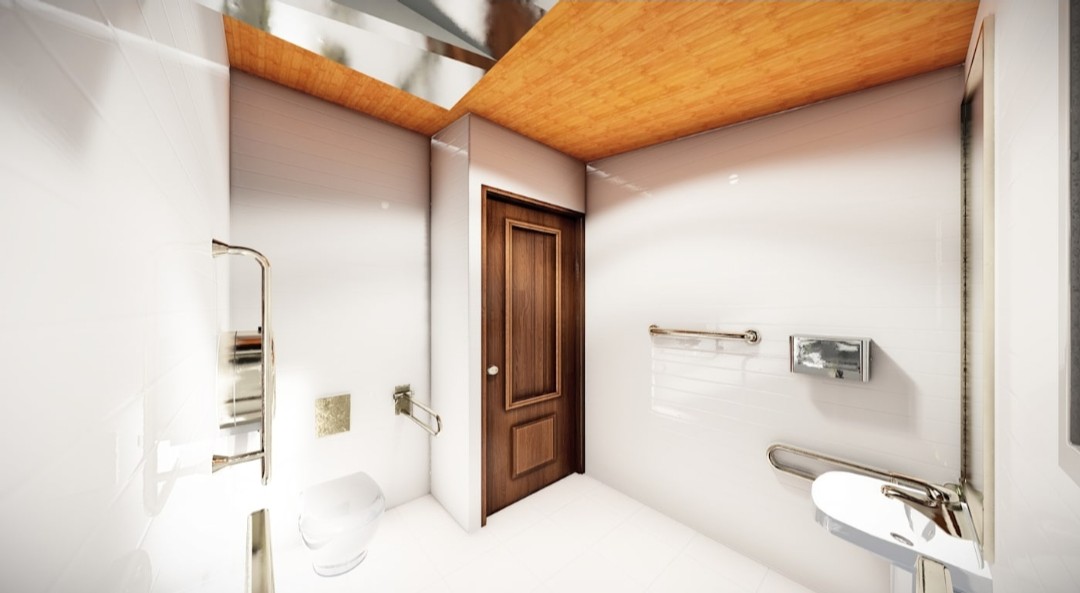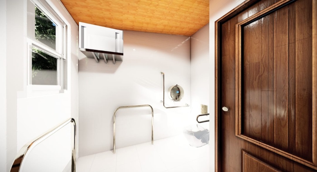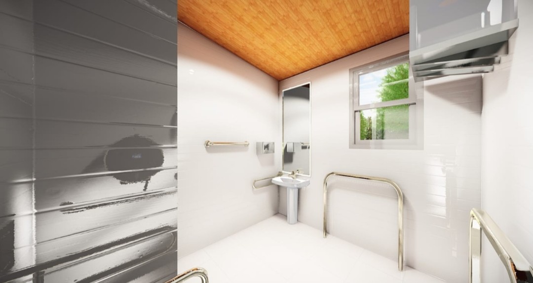 The wheelchair-accessible Leloo facility is available across multiple Leloo models. For dual-stall configurations such as the Twonee, one compartment may be constructed as a standard restroom while the second is fully wheelchair accessible.
